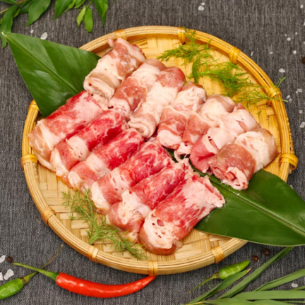 - Quy cách: Cắt lát mỏng, cuộn sẵn, đóng khay 200g – 500g.