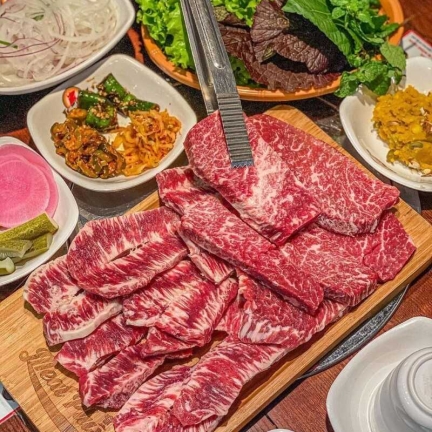 - BBQ dẻ sườn: Cắt lát mỏng, ướp sốt Hàn Quốc, nướng than hoa thơm béo.