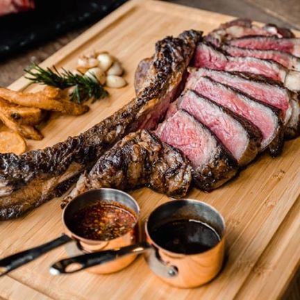 - Steak Tomahawk: Cắt dày 3–4cm, áp chảo và nướng lò kết hợp để giữ độ ngọt thịt.